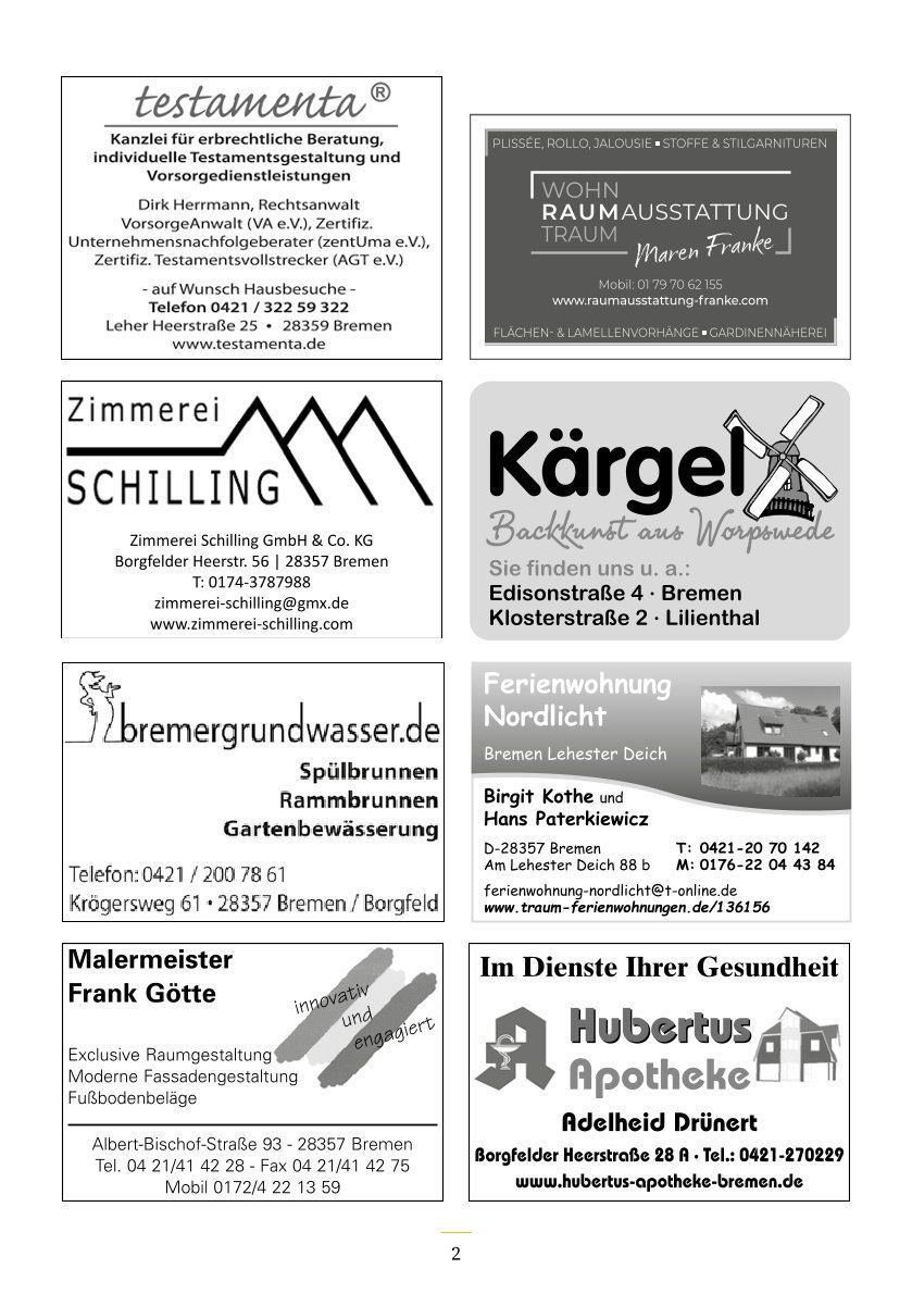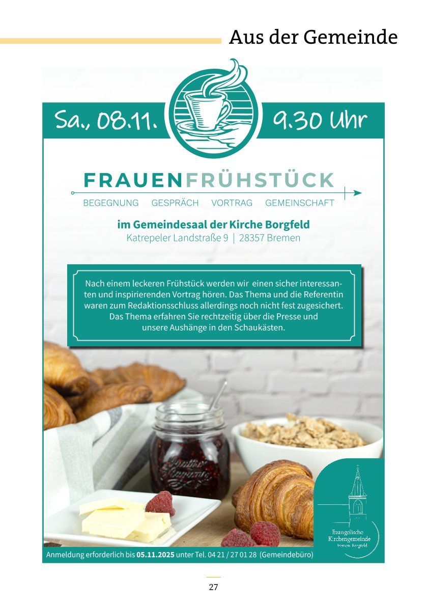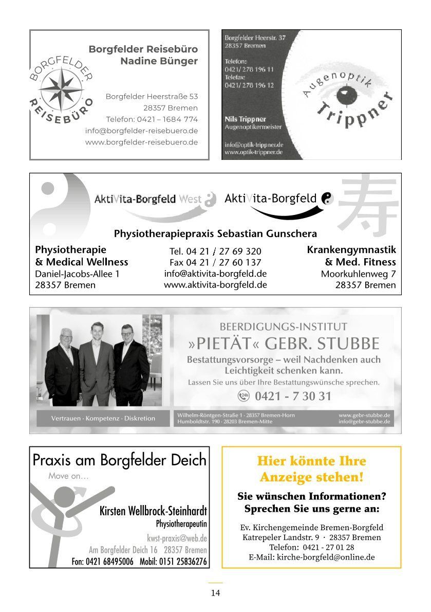 Sie finden unseren Gemeindebrief ab sofort in folgenden Geschäften in Borgfeld: